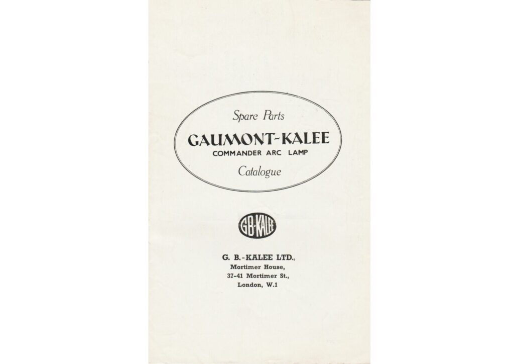 Gaumont-Kalee Commander Arc Lamp – Spare Parts Catalogue