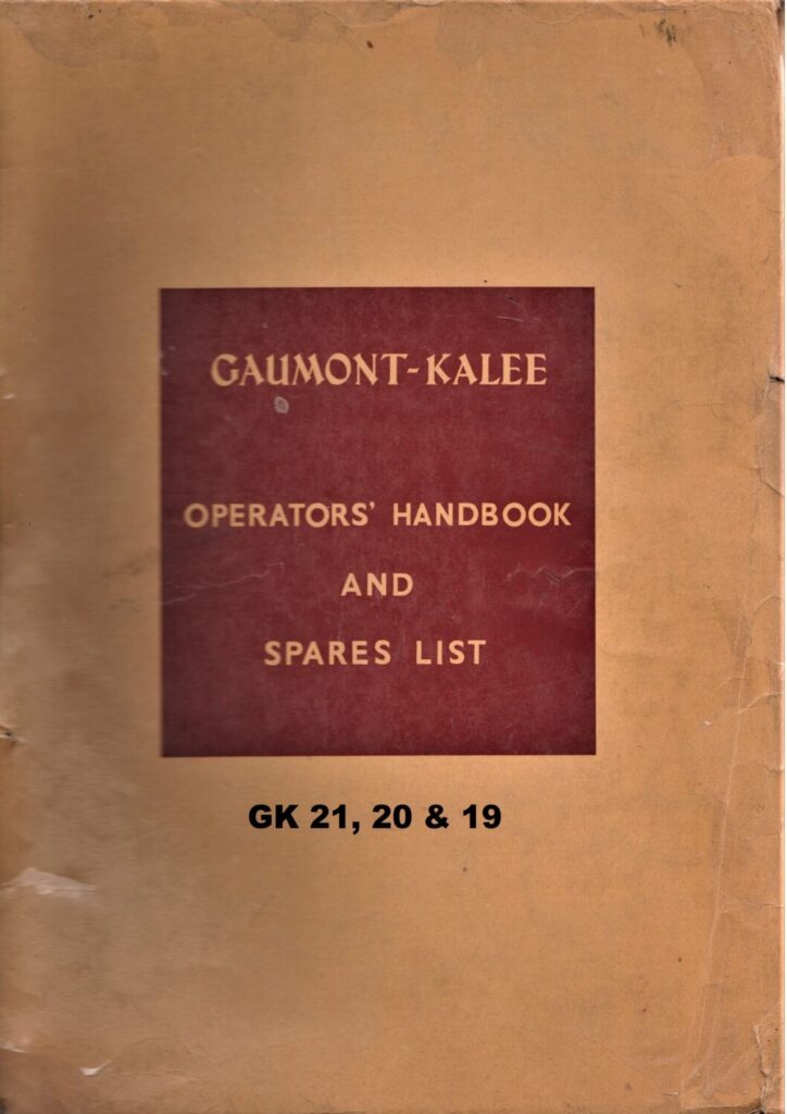 Gaumont-Kalee Operators’ Handbook And Spares List – GK 21, 20, & 19