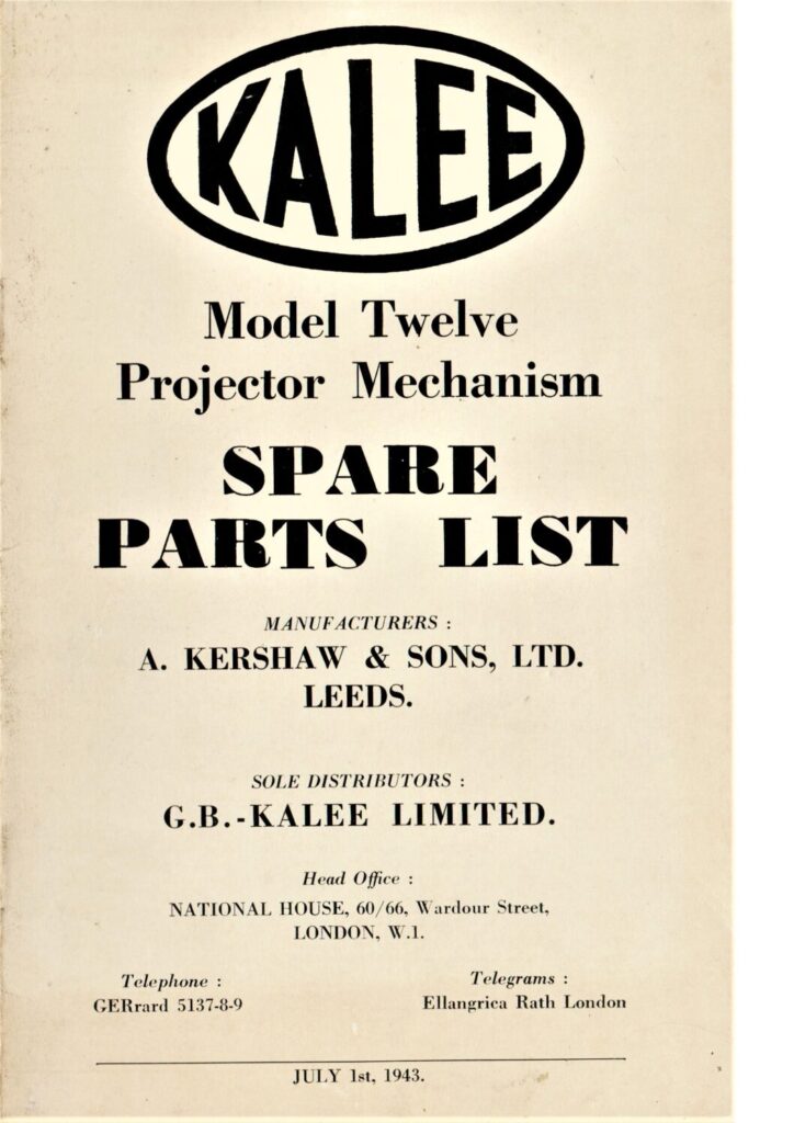 Kalee Model Twelve Projector Mechanism – Spare Parts List