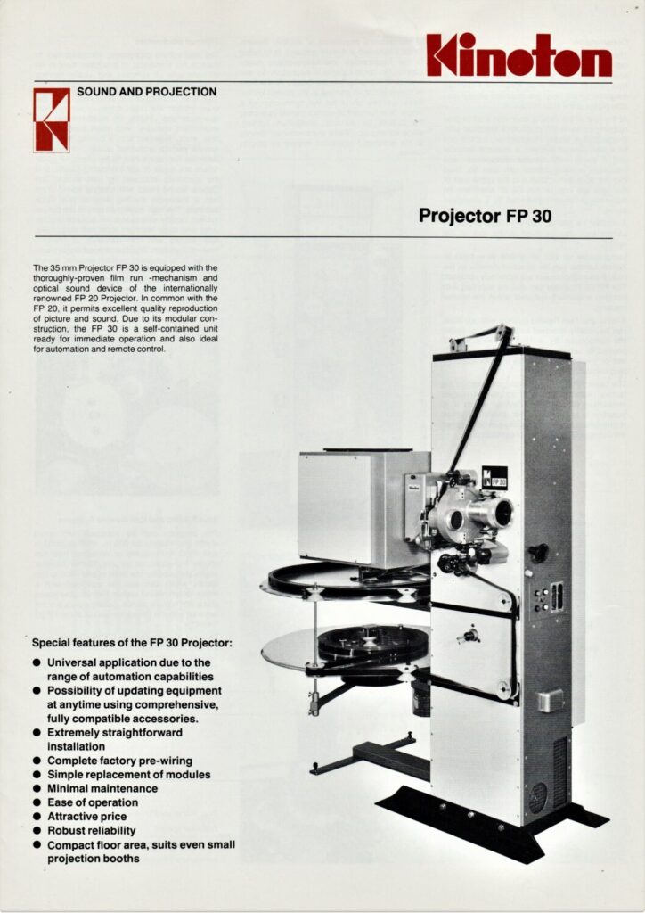 A trade brochure for the Philips DP 70 dual gauge 70mm/35mm projector.