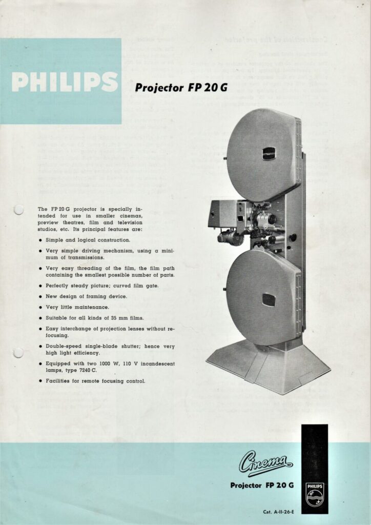 Information brochure about the Philips FP 20 G film projector.